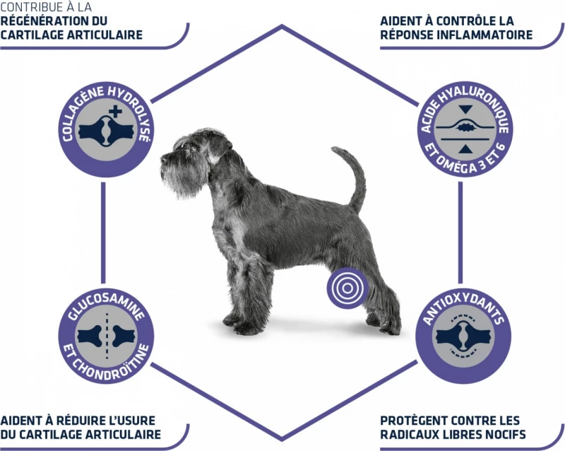 Dit dieet voor voeding bevat vitamine K die vecht tegen de problemen van botverkalking. Het is rijk aan hyaluronzuur, glucosamine en chondroïtinesulfaat om een goede gewrichtsgezondheid bij honden te bevorderen.
