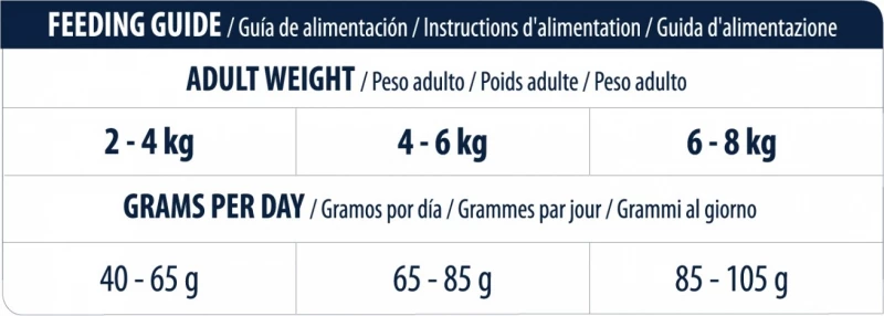 – Matig caloriegehalte: maakt een dieet mogelijk zonder overgewicht te produceren bij katten die niet erg actief of gesteriliseerd zijn.