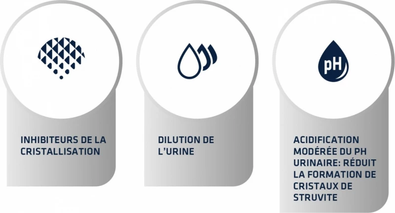 – Preventie en beheersing van het terugkeren van stenen gevormd door kristallen van struviet of calciumoxalaat