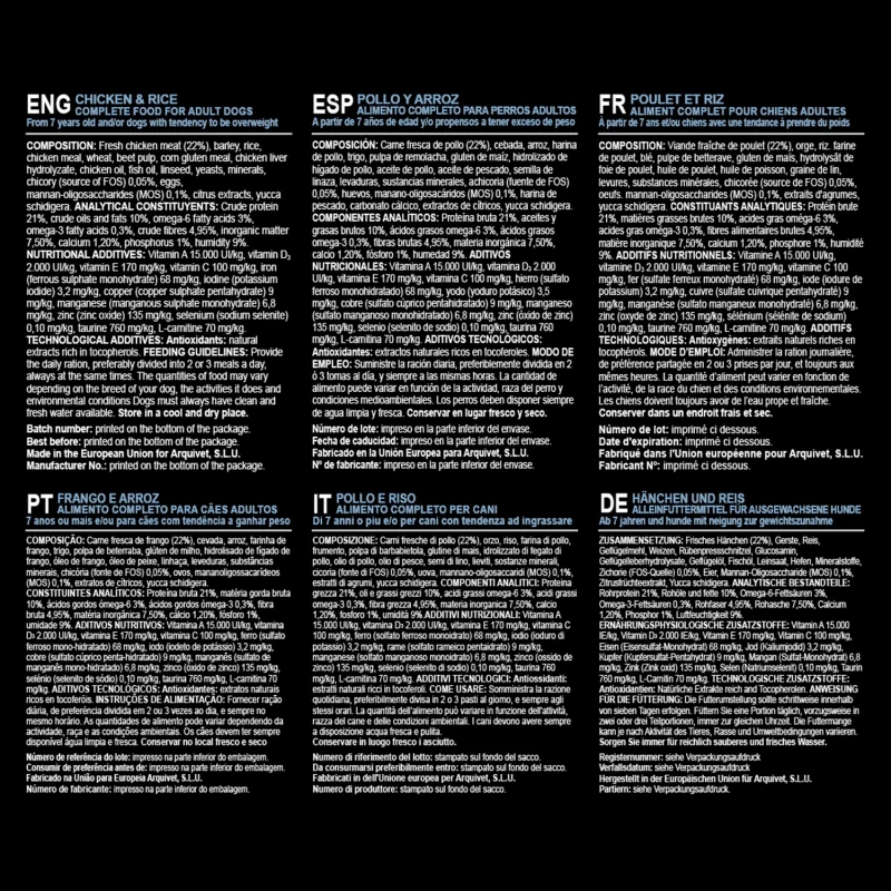 BESCHRIJVING VAN ARQUIVET Senior & Light Chicken and Rice