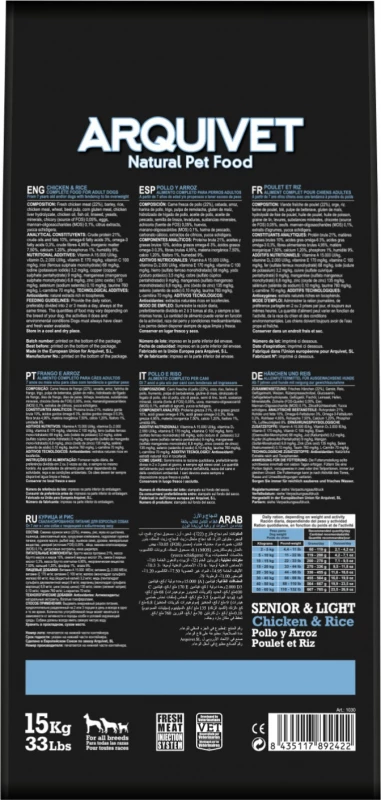 Specificaties voor ARQUIVET Senior & Light Chicken and Rice
