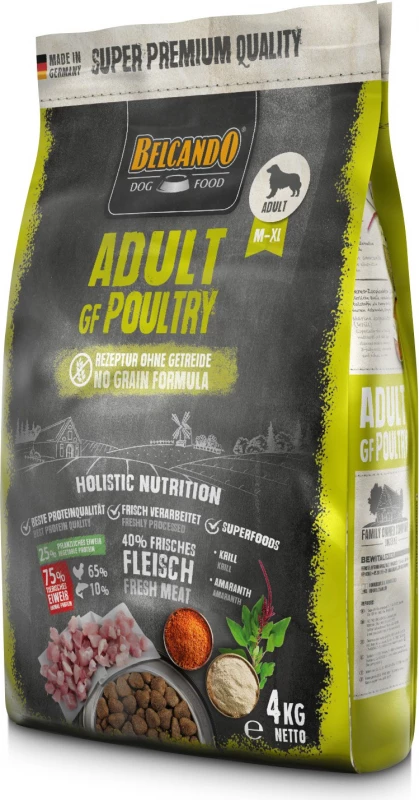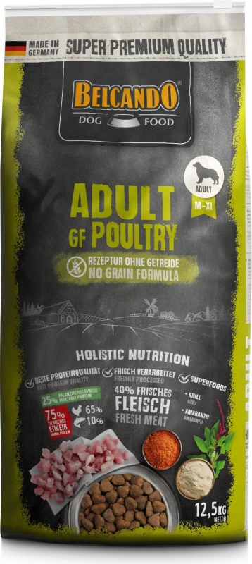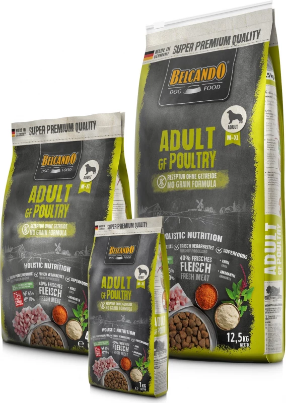 Belcando biedt volwassen GF (graanvrij) brokken die rijk zijn aan gevogelte, speciaal ontworpen voor volwassen honden met normale activiteit.