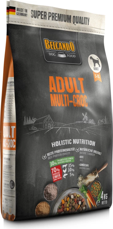 Belcando biedt Adult Multi-Croc brokjes voor grote honden: verteerbaar, rijk aan hoogwaardige grondstoffen, groente en pasta speciaal ontworpen voor volwassen honden met normale activiteit.