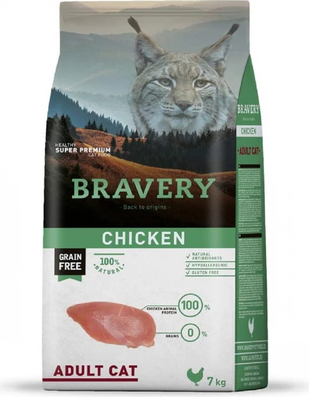 BESCHRIJVING VAN BRAVERY Adult Cat, graanvrij, met kip