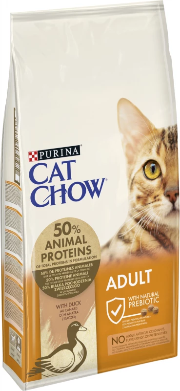 CAT CHOW ADULT met eend is een compleet en uitgebalanceerd dieet voor volwassen katten om gezond te blijven.