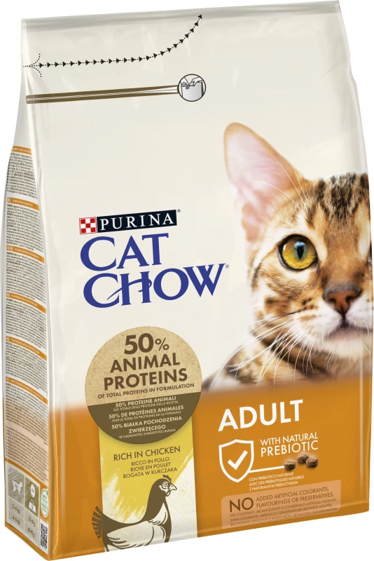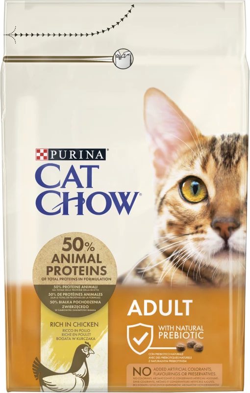 Geef je kat de beste voeding met het CAT CHOW ADULT-kattenvoer dat rijk is aan kip.