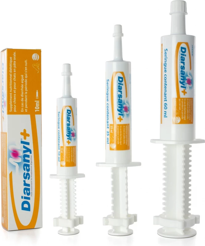 Diarsanyl is een voedingssupplement voor honden en katten om het spijsverteringsevenwicht te herstellen. Het wordt gebruikt in het geval van voorbijgaande diarree die optreedt na een verandering van dieet of stress.