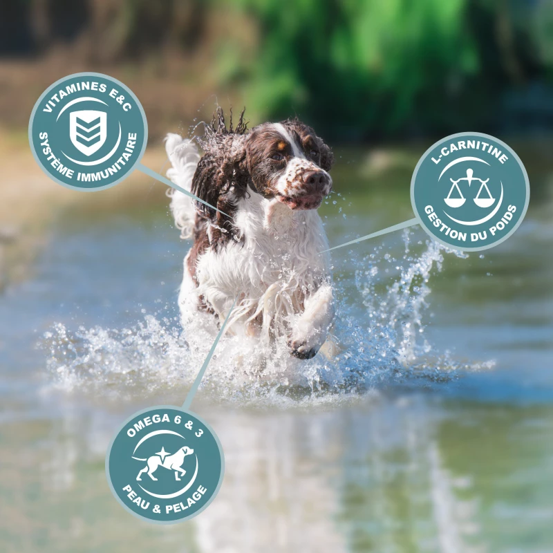 – Voor volwassen honden van gemiddelde grootte (10-25kg) met normale fysieke activiteit