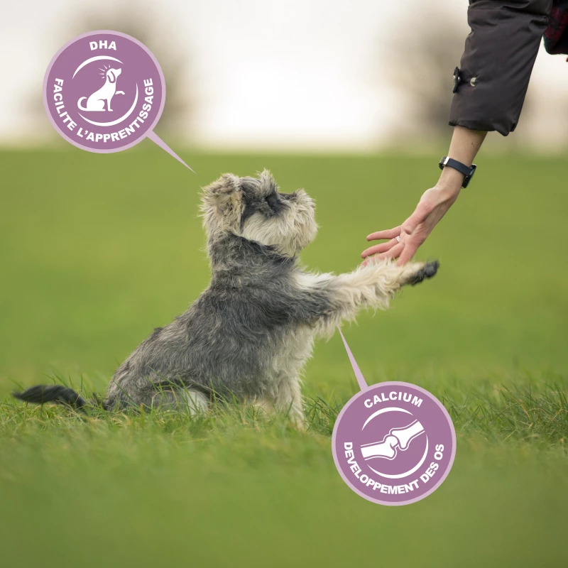 Het voer bevat DHA, dat het leervermogen van je puppy verbetert en je puppy dus beter trainbaar maakt. Het is ook rijk aan prebiotische fos en bietenpulp, waardoor de spijsvertering van je jonge hond gezond blijft. Eukanuba Growing Puppy Medium Breed bevat ook natuurlijke bronnen van omega 6 en 3, die ervoor zorgen dat de vacht en huid van je hond immer glanzend zijn. Daarnaast is het een bron van calcium en Vitamine E en C, waardoor de botontwikkeling en het immuunsysteem van je puppy ondersteund worden.