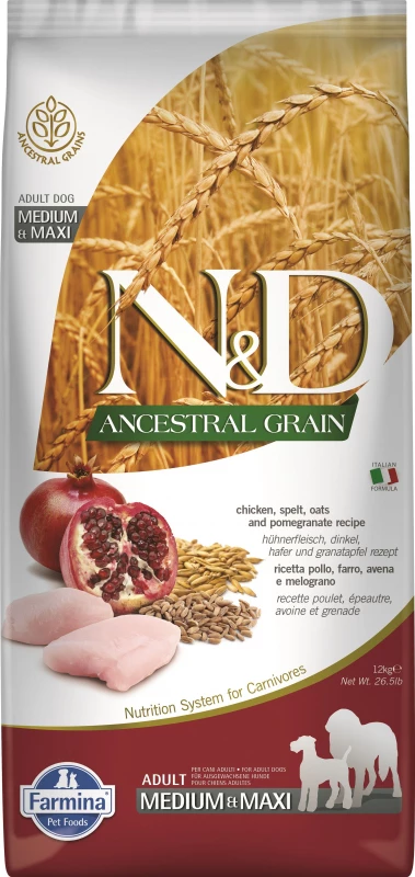 BESCHRIJVING VAN FARMINA N&D Ancestral Grain Medium & Maxi Adult Dog