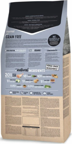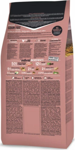 Hertenvlees gedehydrateerde gemalen lamsvlees, kikkererwten, erwten, linzen, erwten eiwit, erwtenmeel, eiprodukt, canolaolie, tapioca, tomaat afvallen, natuurlijk aroma, gedehydrateerde gemalen visvlees, zout, chloride choline, cichorei wortel, tomaat, bosbessen, frambozen, yucca schidigera extract, gedehydrateerde produkt, verkregen door fermentatie van Lactobacillus acidophilus, gedehydrateerd product van Bifidobacterium animalis fermentatie, gedehydrateerd produkt, verkregen door fermentatie van Lactobacillus reuteri, supplement vitamine E, ijzer proteinaat, zink proteinaat, koper proteinaat, ijzersulfaat, zinksulfaat, kopersulfaat, kaliumjodide, thiamine mononitraat (vitamine B1), mangaan proteinaat, mangaanoxide, ascorbinezuur, vitamine A supplement, biotine, niacine, calciumpantothenaat, mangaansulfaat, natriumseleniet, pyridoxine hydrochloride (vitamine B6), vitaminesupplement B12, riboflavine (vitamine B2), vitamine D supplement, foliumzuur.
