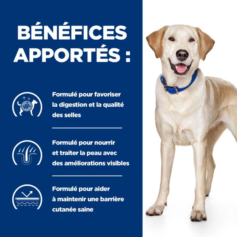 – Medische voeding voor volwassen honden waarvan klinisch is bewezen dat ze een gezonde huid behouden.