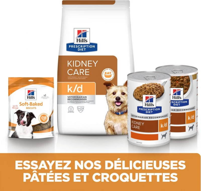 Hill’s Prescription Diet k/d Kidney Care is een volledig dieetvoeder bedoeld ter ondersteuning van de nierfunctie bij chronisch of tijdelijk nierfalen bij volwassen honden. Dit dieetvoeder heeft een laag fosforgehalte en een beperkt gehalte aan hoogwaardige eiwitten.