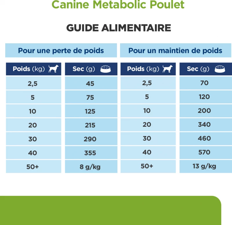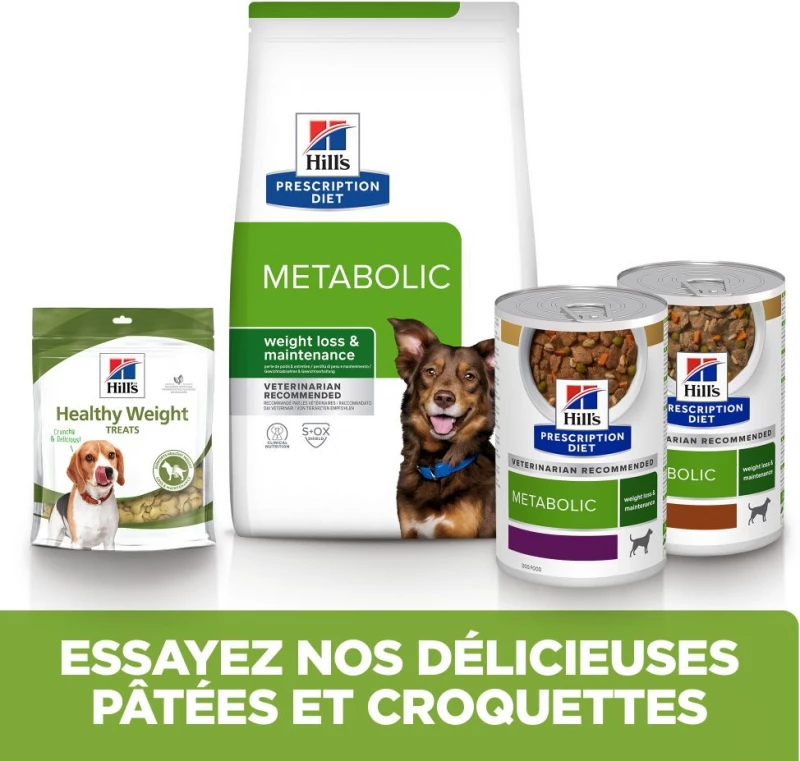 HILL’S Prescription Diet Metabolic Weight Management is klinisch bewezen dat het werkt bij elke hond met zijn eigen unieke energieverbruik. Het activeert de natuurlijke mogelijkheid van het lichaam om overmatig lichaamsvet te verbranden en het calorieverbruik te beïnvloeden. Hill’s Metabolic helpt de hongergevoelens onder controle te houden en zorgt voor een vol en verzadigd gevoel tussen de maaltijden door. Je hoeft niet over te schakelen op een andere voeding als jouw hond weer in vorm is. Tijdens een voedingsonderzoek (bij de mensen thuis) vertoonde 88% van de honden binnen 2 maanden een duidelijk gewichtsverlies.