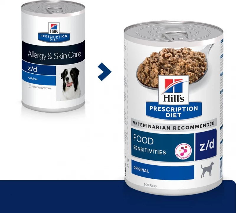 Hills’s Prescription Diet Canine Z/D Food Sensitivies is natvoer voor honden die last hebben van voedselgevoeligheden (intoleranties, allergieën).