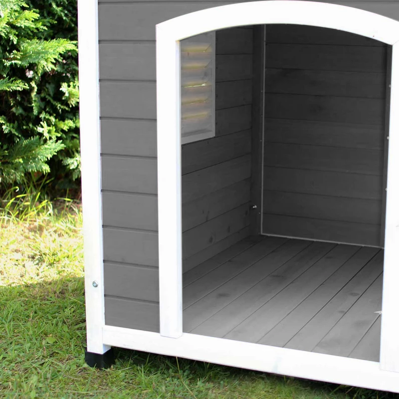 Het hondenhok FALCO van ZOLIA is een luxe schuilplaats. Het heeft een klassiek gesloten gedeelte dat je hond beschermt tegen regen en koude. Naast het gesloten gedeelte heeft het hondenhok ook een mooi terras. Je viervoeter kan in alle weersomstandigheden van het buitenleven genieten.