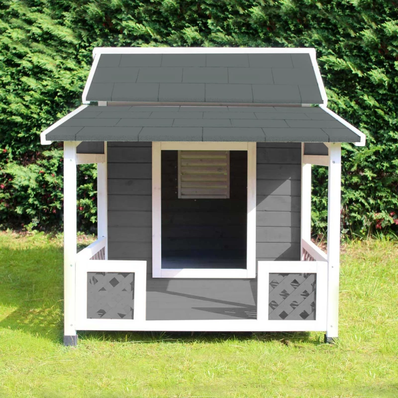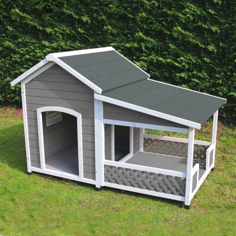 BESCHRIJVING VAN Houten hondenhok met terras voor grote honden ZOLIA FALCO
