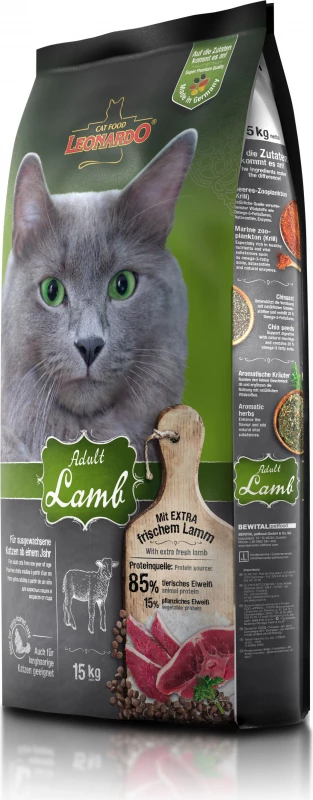 Leonardo Adult Lamb kattenvoer heeft een bijzonder smakelijke smaak met meer dan 30% vers lamsvlees.