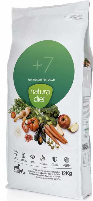 NATURA DIET +7 Senior Hondenvoer is een complete en natuurlijke voeding voor honden ouder dan 7 jaar. Ze zijn ideaal om je hond dagelijks een gezonde voeding te geven. Dit licht verteerbare voedsel draagt bij tot een goede darmgezondheid, voorkomt ouderdomsziekten en versterkt het immuunsysteem. Het draagt bij aan het welzijn en de goede gezondheid van je hond.