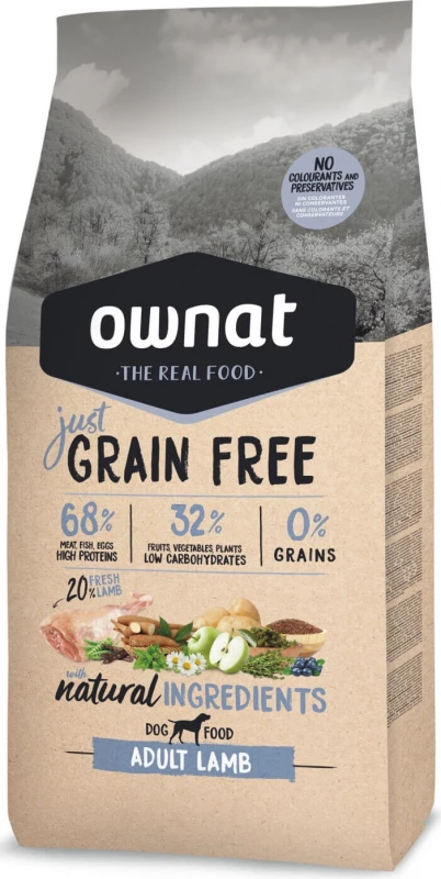 BESCHRIJVING VAN OWNAT Just Grain Free Adult, met lam