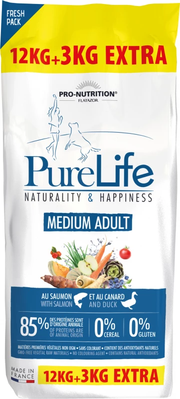 Het Pure Life-assortiment van PRO-NUTRITION Flatazor is perfect aangepast aan de aard van je hond, met als enig doel hem een ??sereen leven te geven, vol vitaliteit! Met 85% eiwit van dierlijke oorsprong, geen granen en glutenvrij, zijn alle Pure Life-voedingsmiddelen van natuurlijke oorsprong en komen ze zo dicht mogelijk bij het oorspronkelijke dieet van je hond. Zonder kleurstoffen of ggo’s bevatten ze natuurlijke antioxidanten, evenals een grote verscheidenheid aan groenten en fruit om je hond te voorzien van de natuurlijke voedingsstoffen die essentieel zijn voor zijn immuniteit en welzijn. De aanwezige mineralen en essentiële vetzuren bevorderen een gezonde huid en een glanzende vacht.