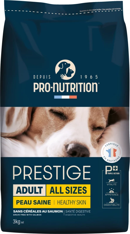 Pro-Nutrition PRESTIGE is een Frans assortiment hondenvoer ontworpen om aan hun dagelijkse voedingsbehoeften te voldoen. Elke Prestige-formule is ontwikkeld om je hond een optimaal voedingsdieet te bieden, perfect uitgebalanceerd en hyper smakelijk, om aan al zijn behoeften te voldoen, ongeacht zijn conditie en fysiologische fase. Ze garanderen hem elke dag echt plezier tijdens de maaltijd. Het Prestige-assortiment is samengesteld zonder kunstmatige kleurstoffen, met niet-ggo plantaardige grondstoffen en gediversifieerde ingrediënten van zeer hoge kwaliteit en hyperverteerbaar.