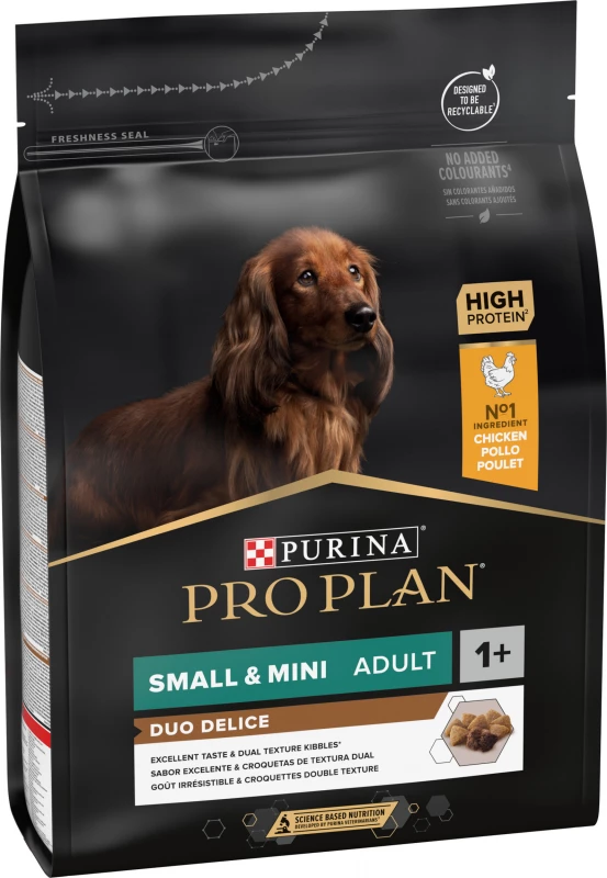 PRO PLAN Duo Delicious SMALL Adult hondenvoer is speciaal aangepast voor kleine volwassen honden onder de 10 kg. De unieke formule van deze brokken maakt ze knapperig en erg smakelijk.