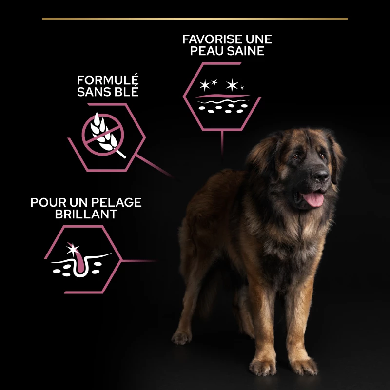 Geef je hond het beste met PRO PLAN Large Robust Adult Sensitive Skin met Optiderma, een complete voeding voor grote volwassen honden met een robuust morfotype en een gevoelige huid.