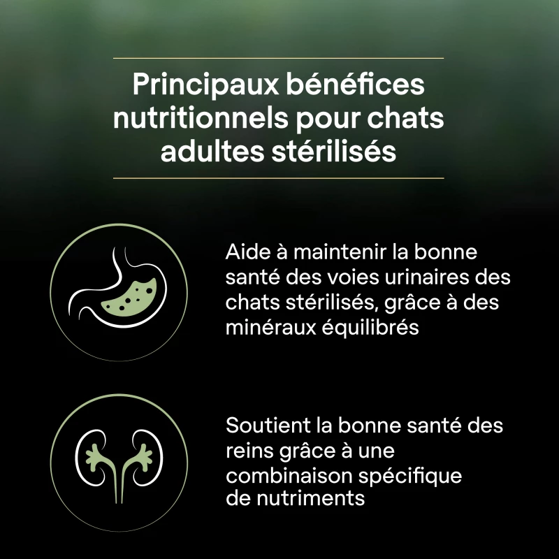– Volledige voeding voor gesteriliseerde volwassen katten vanaf 1 jaarÂ
