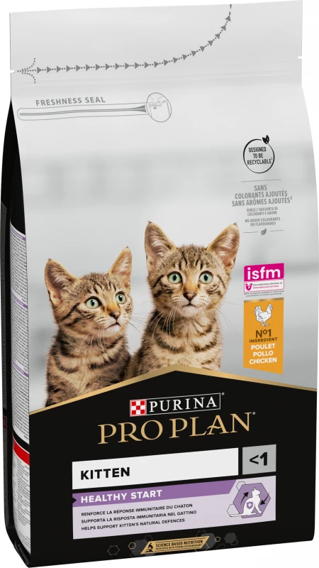 Omdat het erg belangrijk is om een ??groeiend kitten goed te voeden, ga dan voor de PRO PLAN CAT JUNIOR kittenbrokjes, die rijk is aan kip en rijst. Geformuleerd met een essentieel bestanddeel van moedermelk, DHA genaamd, bevorderen deze brokken de ontwikkeling van de hersenen en de gezichtsscherpte. Calcium draagt ??bij aan de vorming van spieren en gebit. Omega-vetzuren verbeteren de kwaliteit van de vacht.