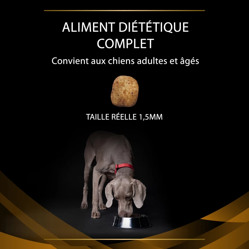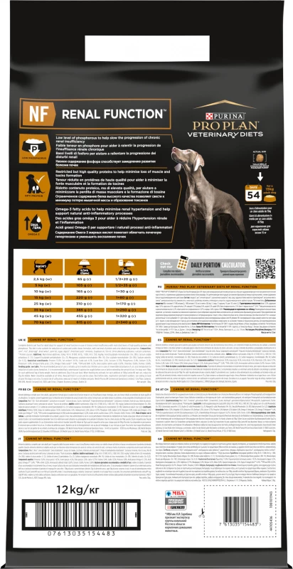 Pro Plan Veterinary Diets NF Nierfunctie wordt aanbevolen voor volwassen honden die lijden aan nierinsufficiëntie. Dit complete diervoeder bevat een verlaagd fosforgehalte, omdat bekend is dat dit mineraal bijdraagt ??aan de progressie van de ziekte. Het bevat ook een beperkt niveau van hoogwaardige eiwitten, om de vorming van gifstoffen te minimaliseren en tegelijkertijd de spiermassa te behouden. Omega-3-vetzuren helpen hypertensie en nierontsteking te minimaliseren. Geef niet aan drachtige of lacterende teven, puppy’s of honden met een hoge eiwit- of fosforbehoefte.