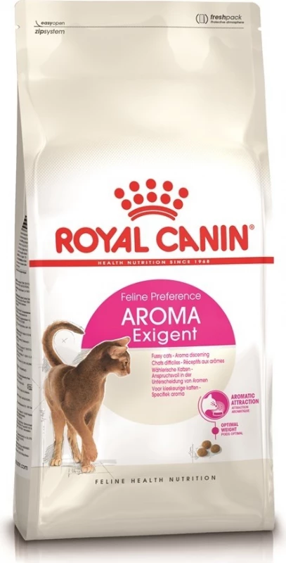 ROYAL CANIN Aroma voor kieskeurige katten is een complete en uitgebalanceerde voeding voor volwassen katten met een moeilijke eetlust. Om aantrekkelijk te zijn voor kieskeurige katten, is dit voer bijzonder aromatisch en spreekt het de neus van de kat aan.
