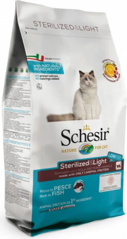 Schesir Natural Selection Adult Sterilised is een complete en uitgebalanceerde voeding voor gesteriliseerde volwassen katten. Graanvrije en glutenvrije formule.
