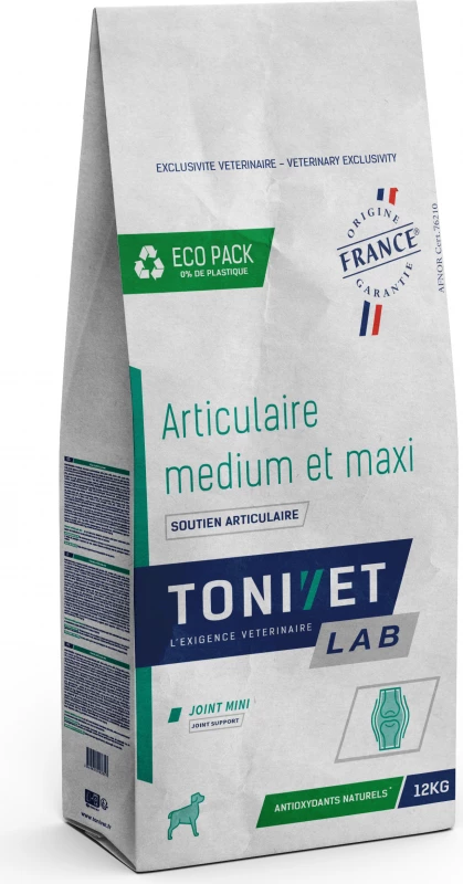 Tonivet-brokjes zijn speciaal aangepast voor middelgrote en grote honden die lijden aan gewrichtspijn en motorische problemen. Tonivet Articomfort-brokjes zijn speciaal ontwikkeld om de ondersteuning van de gewrichten te bevorderen dankzij de selectie van ingrediënten: glucosamine/chondroïtinesulfaat, planten met een gerichte werking en ingrediënten die rijk zijn aan omega 3. Dankzij een gecontroleerde energievoorziening helpen arti comfort brokjes het dier op een gezond gewicht te houden. De grootte van de brokken (16 mm) is volledig aangepast aan de morfologie van je dier.